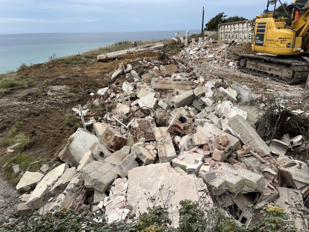 Conséquence : la crête de falaise a reculé brutalement de 7 à 8 mètres, mettant directement en péril l’habitation située au 1 rue des Vikings.