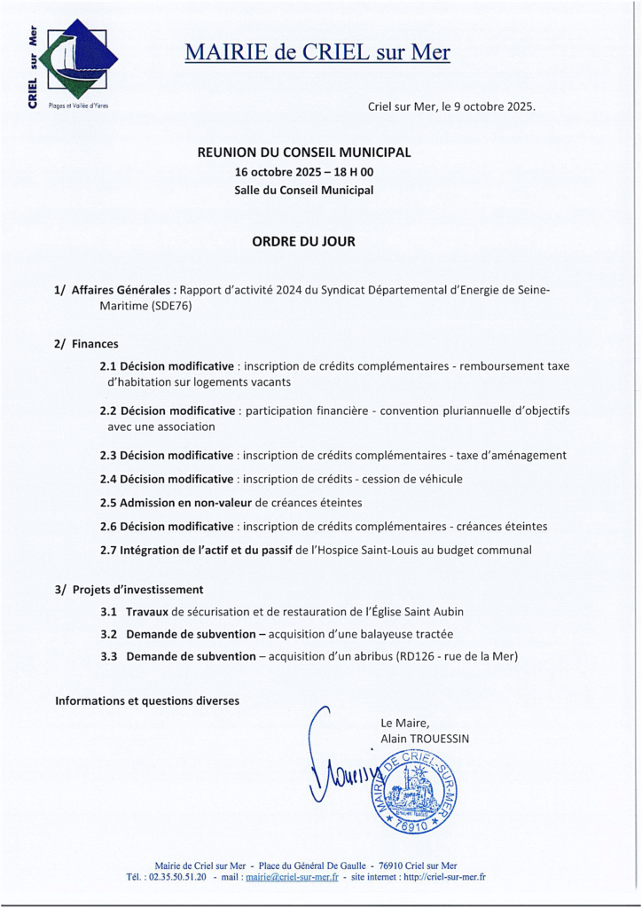 Prochain Conseil Municipal 16/10 Publication publiée :10 octobre 2025 Temps de lecture :0 mins read Read more articles Article précédentPrévention des intoxications au monoxyde de carbone Article suivantBike and Run 2025 Vous devriez également aimer L’Atelier des Marées ouvre ses portes à Criel ! 2 juillet 2025 Incident à la station d’épuration 5 juin 2025 Prochain Conseil Municipal 02/07 26 juin 2025 Appel bénévoles – protection des amphibiens 26 février 2025 Un Point Info Tourisme en centre bourg 16 mai 2025 Concours « Fleurissons la Seine-Maritime » 2025 13 mai 2025